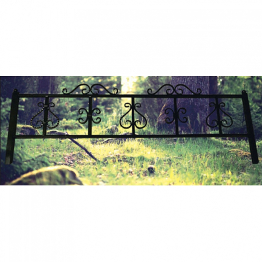 Оградка выполнена из профильной трубы 20*20*1,5, элементов кованных, обжимной полосы.